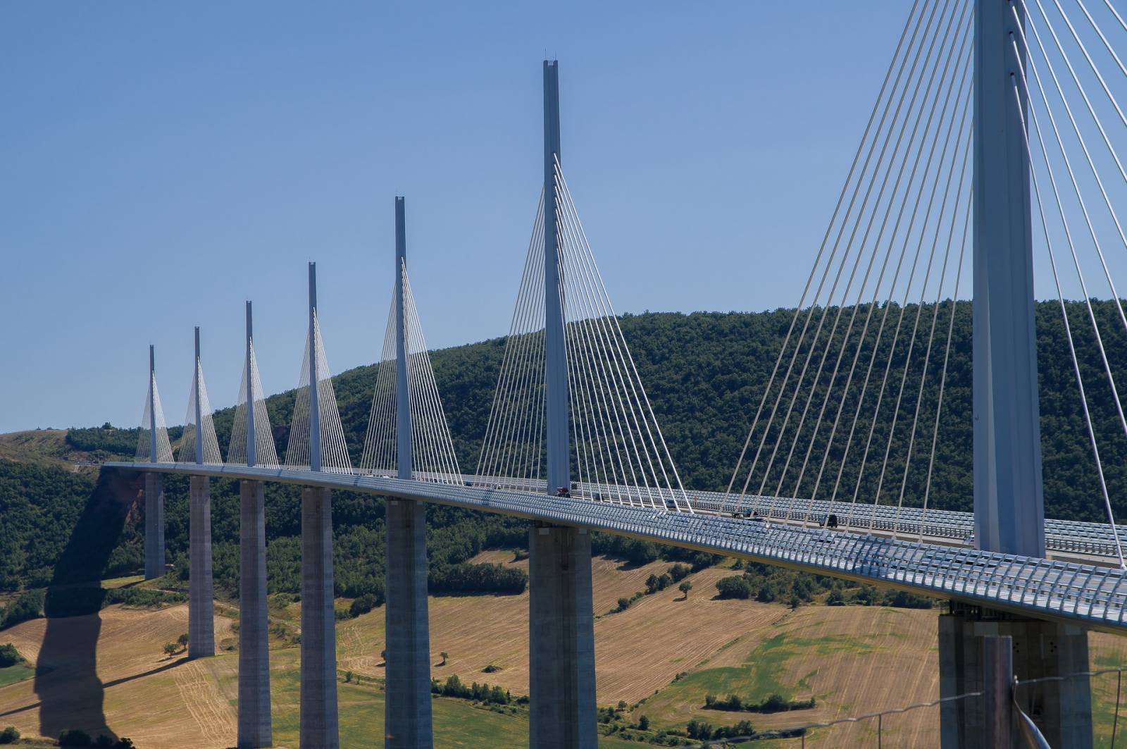 Le pont à péage anti-gravité du Viaduc de Millau plane à 343 m au-dessus de la vallée du Tarn, ce qui en fait l’un des ponts routiers les plus hauts du monde.